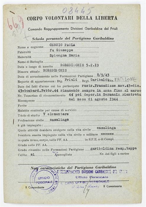 ANPI - Comitato provinciale di Udine - Fondo Schede Anagrafiche