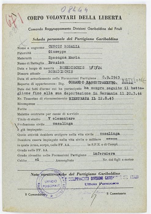 ANPI - Comitato provinciale di Udine - Fondo Schede Anagrafiche