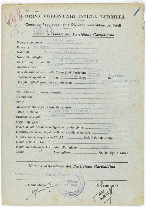ANPI - Comitato provinciale di Udine - Fondo Schede Anagrafiche