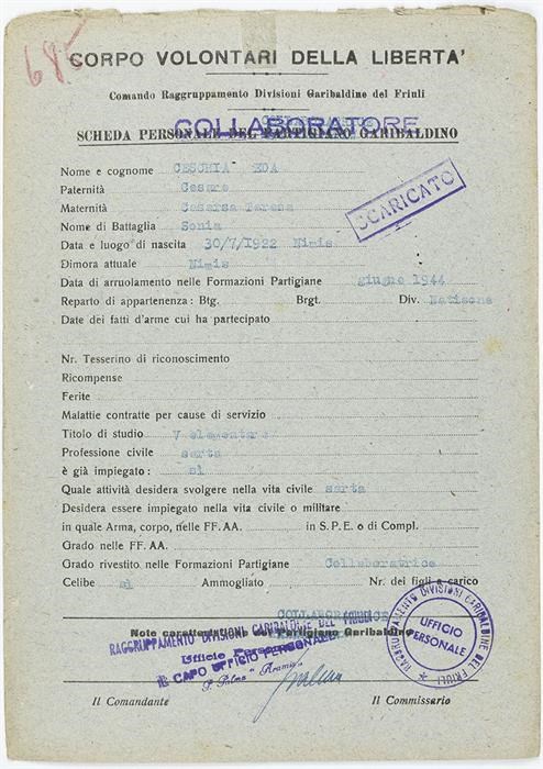 ANPI - Comitato provinciale di Udine - Fondo Schede Anagrafiche