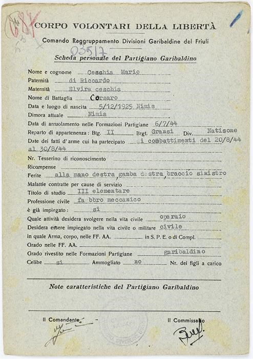 ANPI - Comitato provinciale di Udine - Fondo Schede Anagrafiche