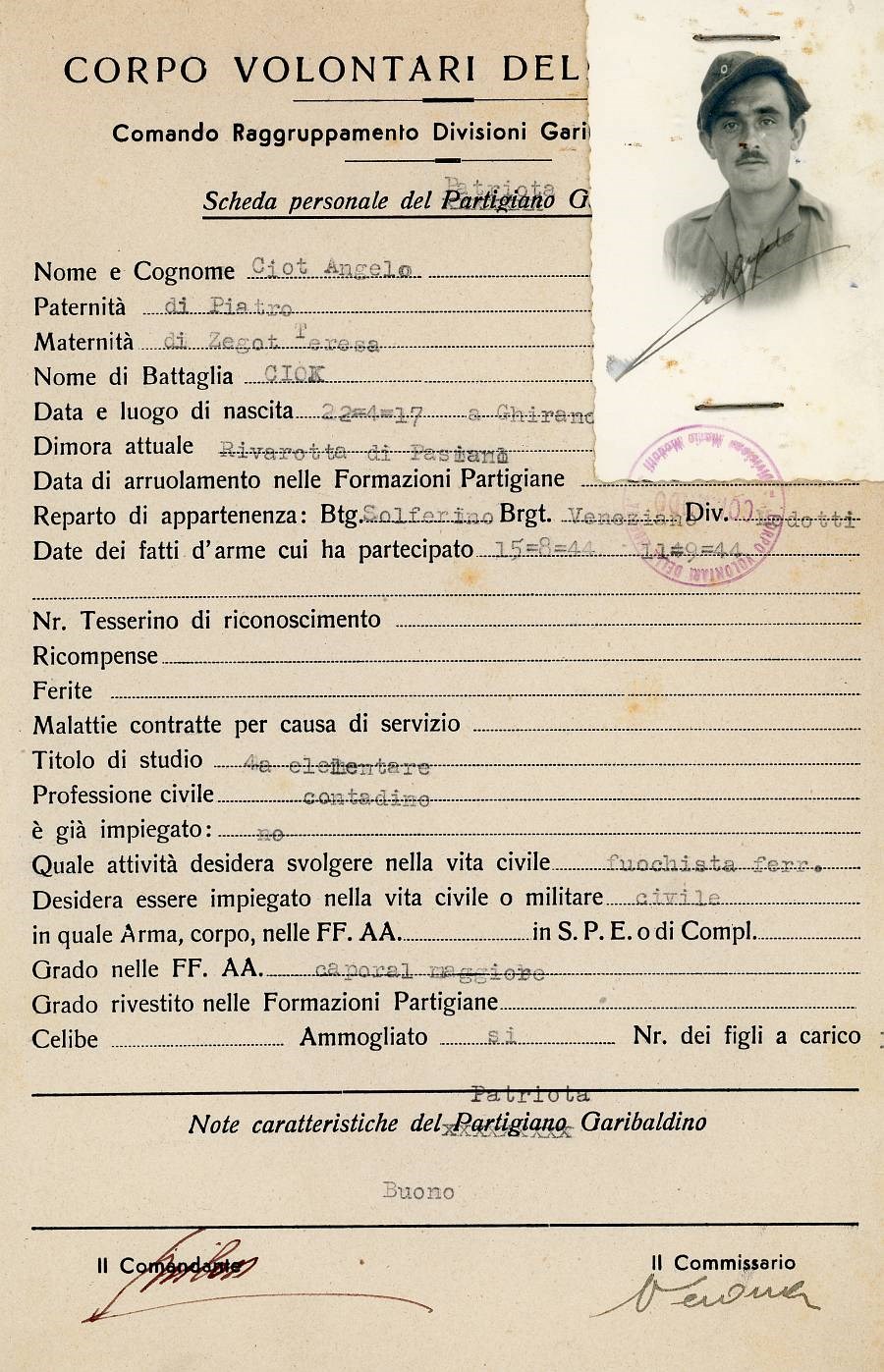 ANPI - Comitato provinciale di Pordenone - Archivio Storico ANPI - Comitato provinciale di Pordenone - Schede del partigianato