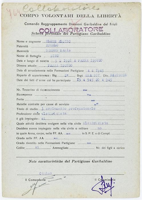 ANPI - Comitato provinciale di Udine - Fondo Schede Anagrafiche