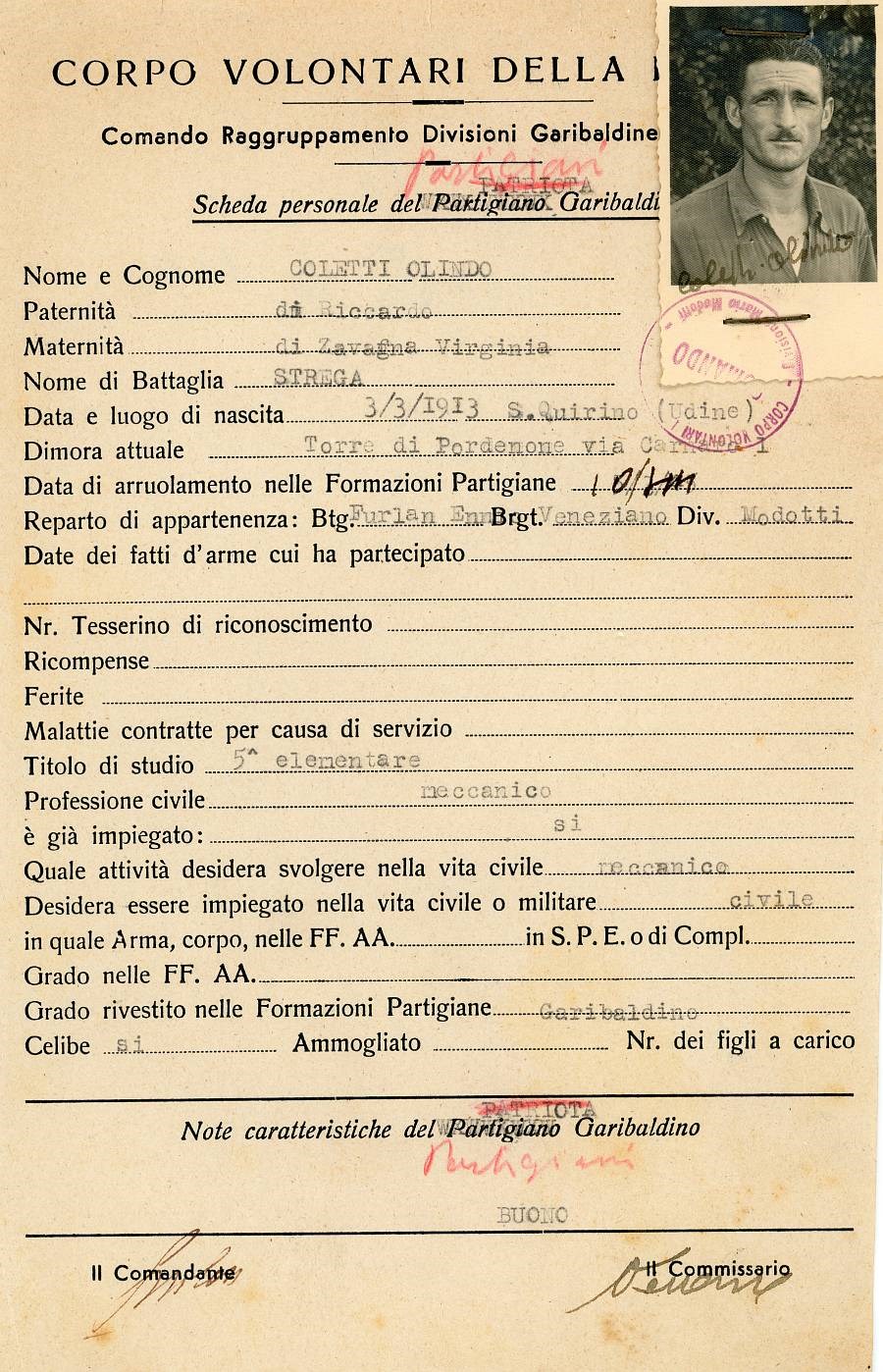 ANPI - Comitato provinciale di Pordenone - Archivio Storico ANPI - Comitato provinciale di Pordenone - Schede del partigianato