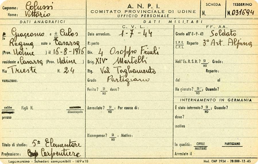 ANPI - Comitato provinciale di Pordenone - Archivio Storico ANPI - Comitato provinciale di Pordenone - Schede del partigianato