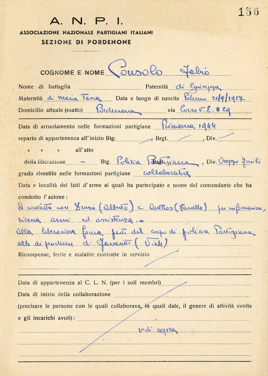 ANPI - Comitato provinciale di Pordenone - Archivio Storico ANPI - Comitato provinciale di Pordenone - Schede del partigianato