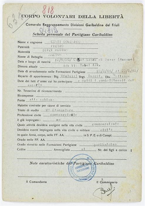 ANPI - Comitato provinciale di Udine - Fondo Schede Anagrafiche