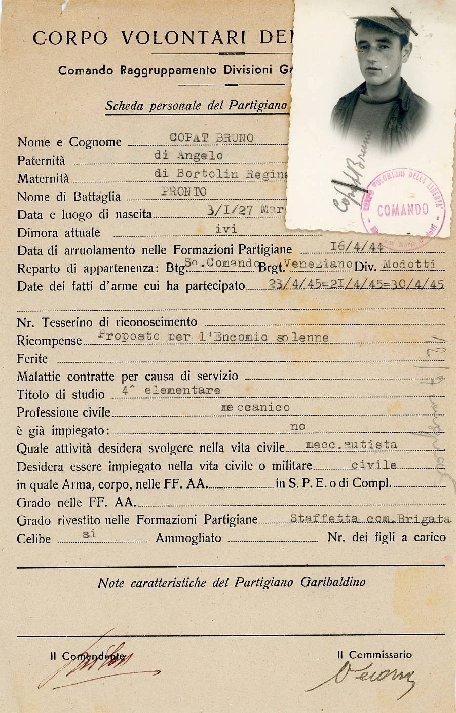 ANPI - Comitato provinciale di Pordenone - Archivio Storico ANPI - Comitato provinciale di Pordenone - Schede del partigianato