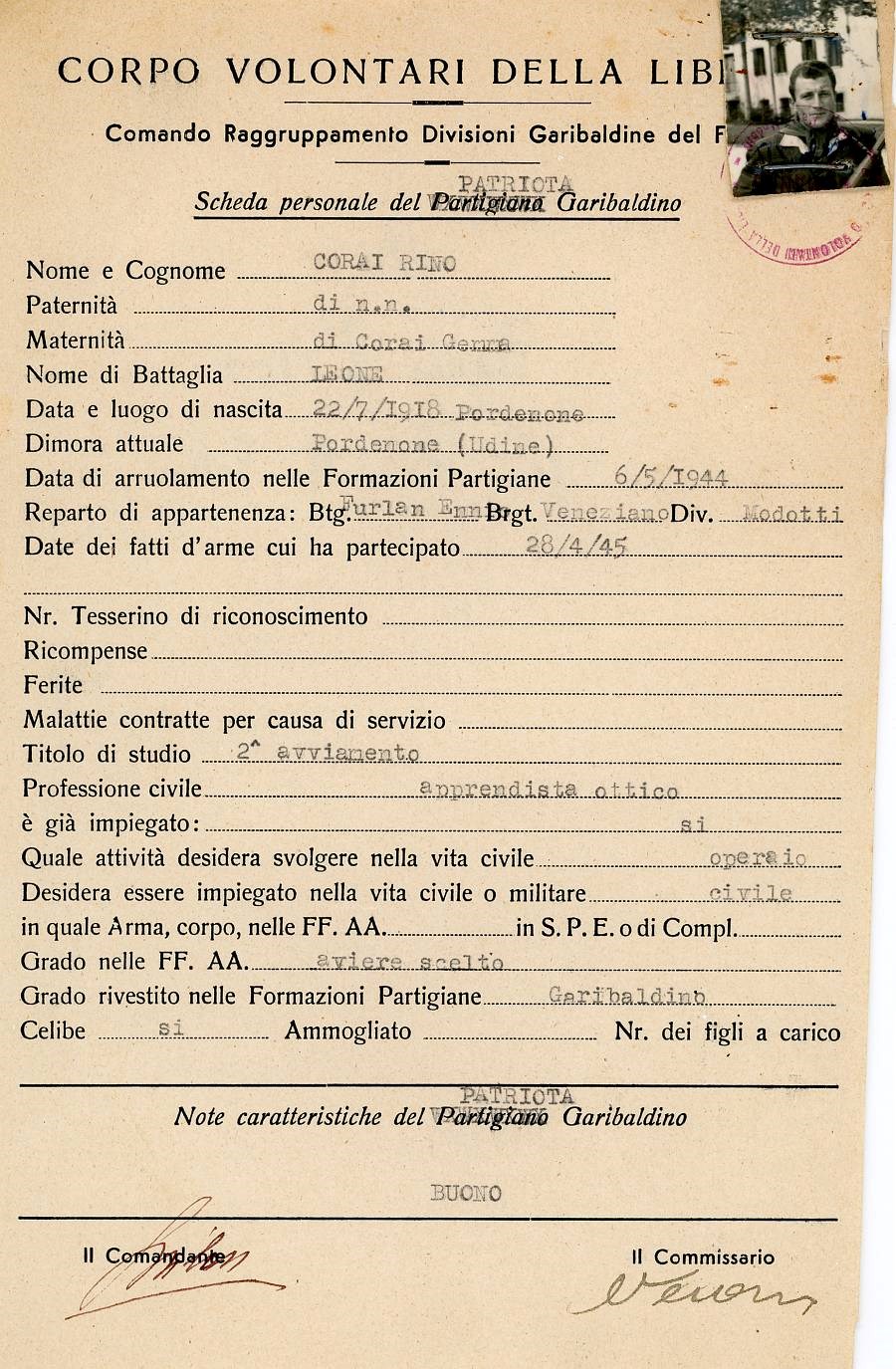 ANPI - Comitato provinciale di Pordenone - Archivio Storico ANPI - Comitato provinciale di Pordenone - Schede del partigianato