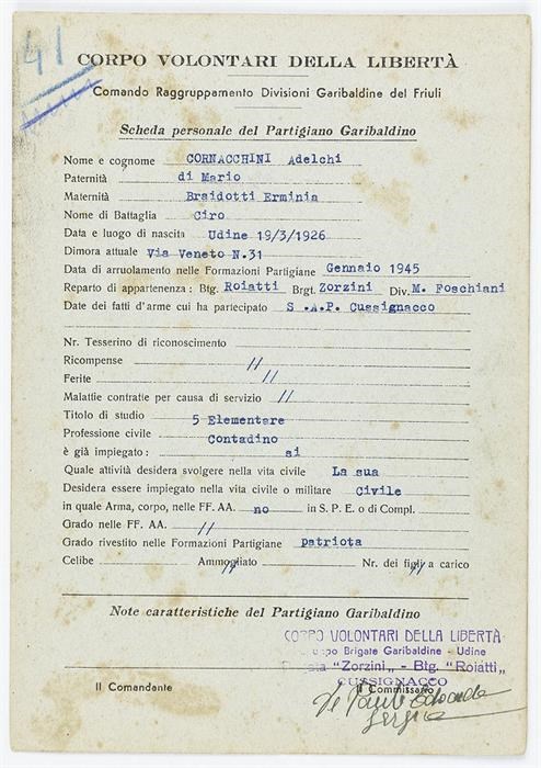 ANPI - Comitato provinciale di Udine - Fondo Schede Anagrafiche