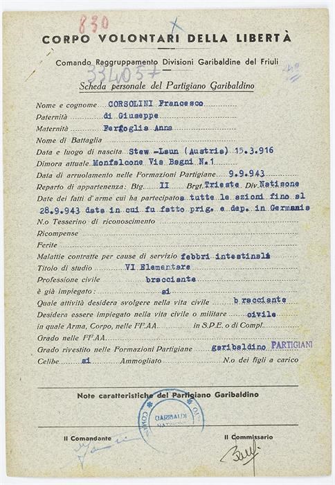 ANPI - Comitato provinciale di Udine - Fondo Schede Anagrafiche