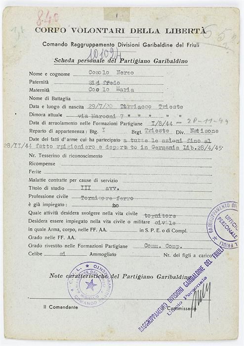 ANPI - Comitato provinciale di Udine - Fondo Schede Anagrafiche