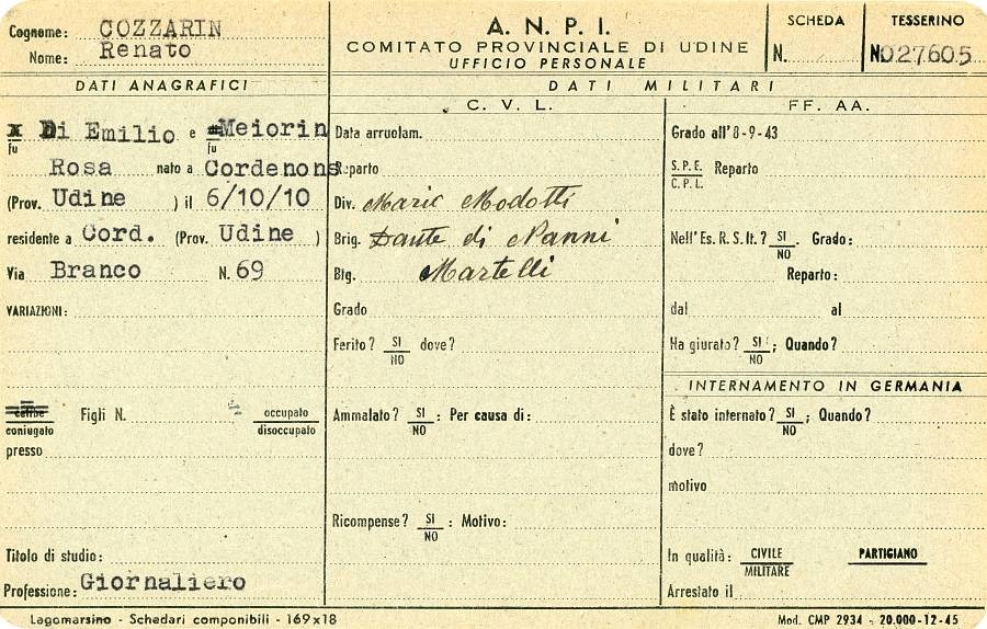ANPI - Comitato provinciale di Pordenone - Archivio Storico ANPI - Comitato provinciale di Pordenone - Schede del partigianato