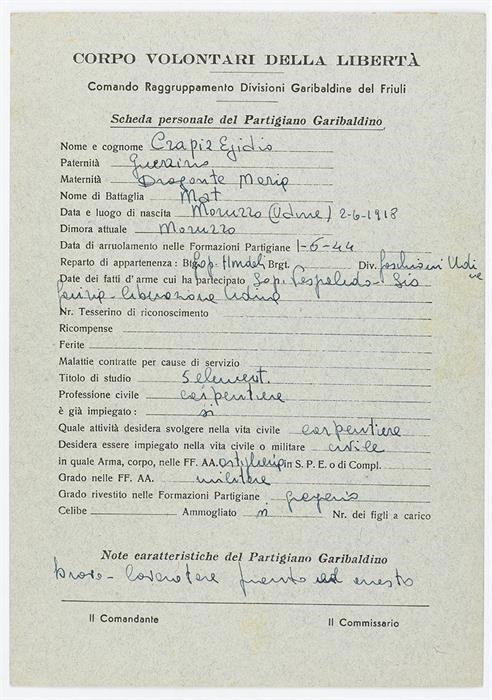 ANPI - Comitato provinciale di Udine - Fondo Schede Anagrafiche