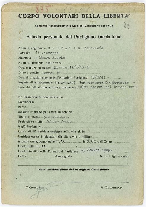 ANPI - Comitato provinciale di Udine - Fondo Schede Anagrafiche