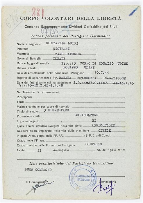 ANPI - Comitato provinciale di Udine - Fondo Schede Anagrafiche