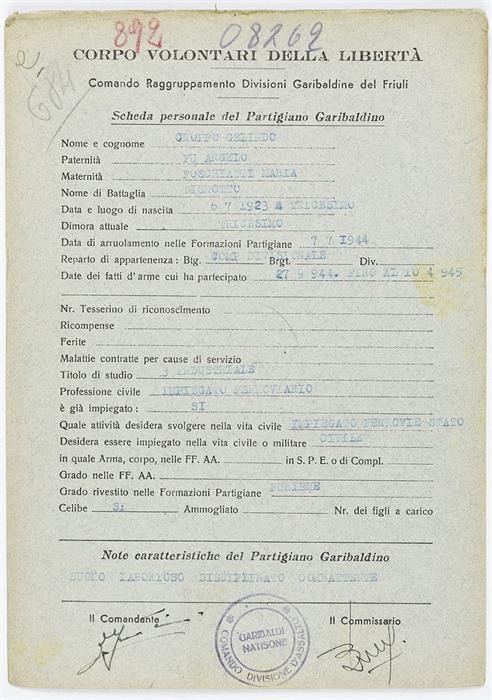 ANPI - Comitato provinciale di Udine - Fondo Schede Anagrafiche