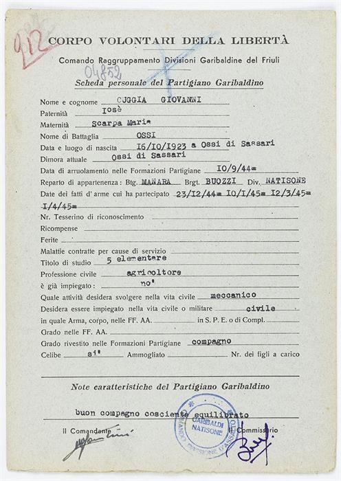 ANPI - Comitato provinciale di Udine - Fondo Schede Anagrafiche