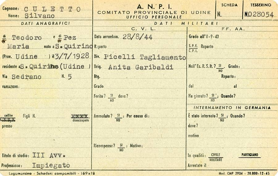 ANPI - Comitato provinciale di Pordenone - Archivio Storico ANPI - Comitato provinciale di Pordenone - Schede del partigianato
