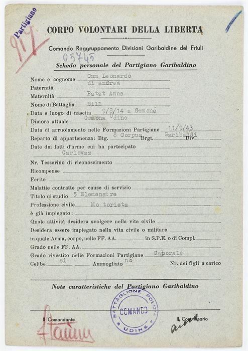 ANPI - Comitato provinciale di Udine - Fondo Schede Anagrafiche