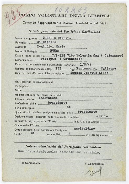 ANPI - Comitato provinciale di Udine - Fondo Schede Anagrafiche