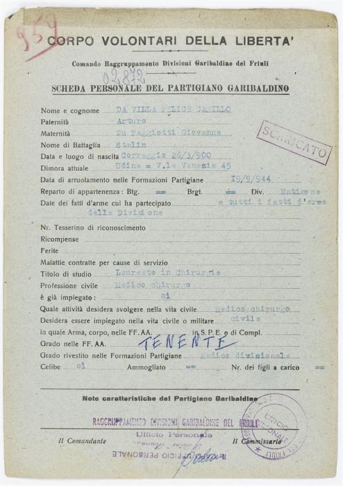 ANPI - Comitato provinciale di Udine - Fondo Schede Anagrafiche