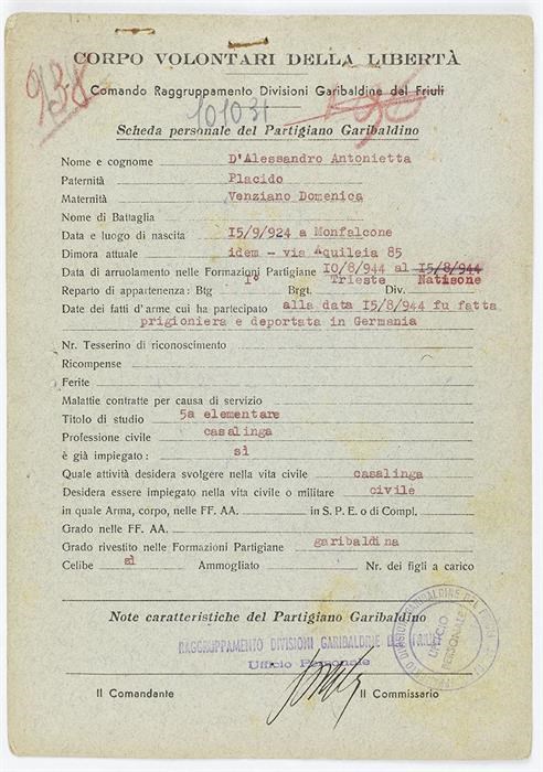 ANPI - Comitato provinciale di Udine - Fondo Schede Anagrafiche