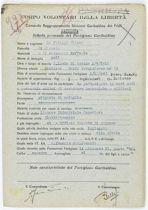 ANPI - Comitato provinciale di Udine - Fondo Schede Anagrafiche