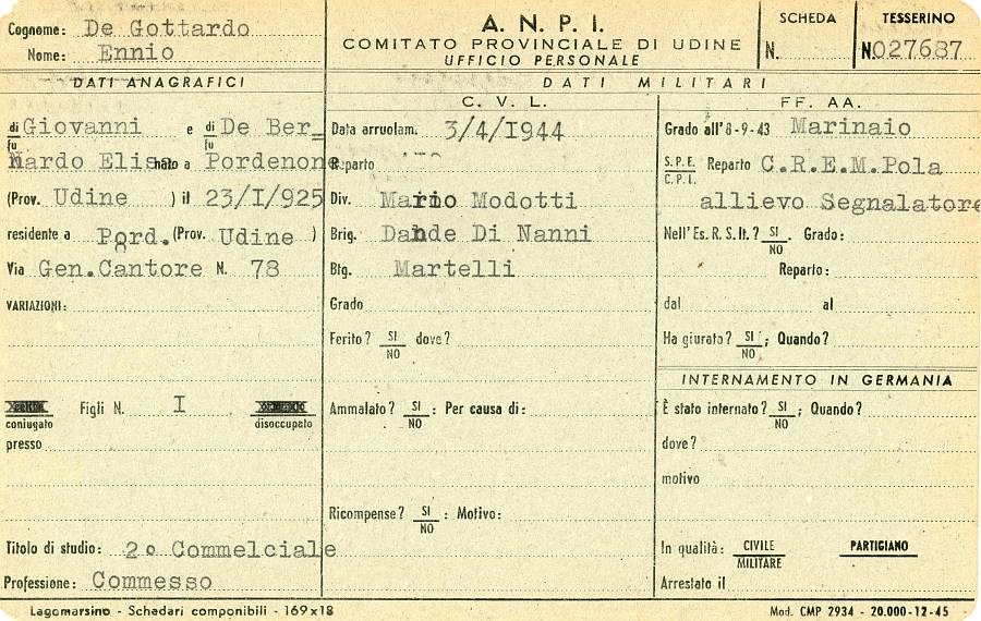 ANPI - Comitato provinciale di Pordenone - Archivio Storico ANPI - Comitato provinciale di Pordenone - Schede del partigianato