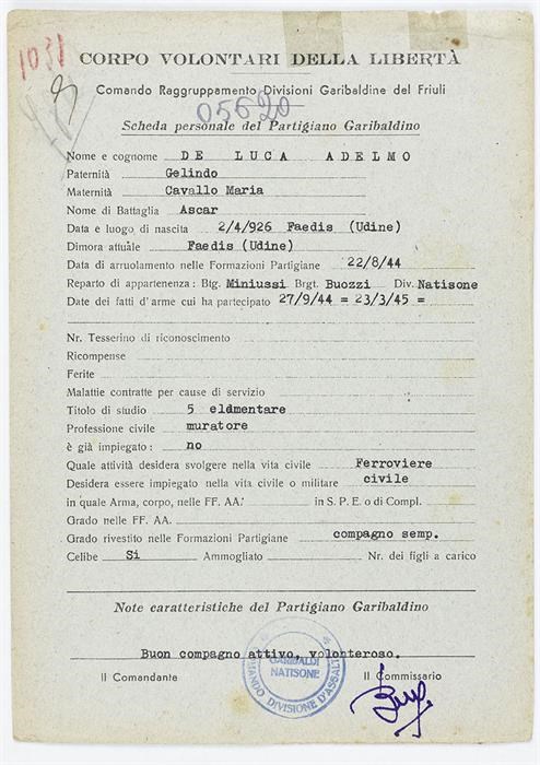 ANPI - Comitato provinciale di Udine - Fondo Schede Anagrafiche