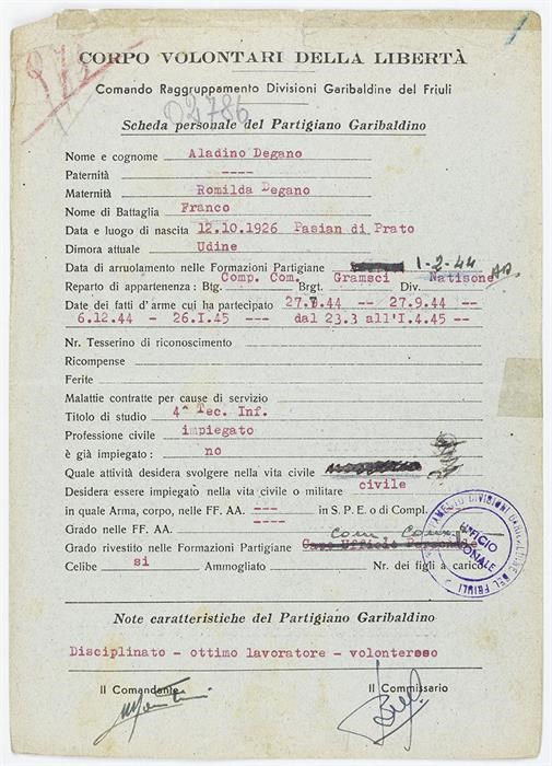 ANPI - Comitato provinciale di Udine - Fondo Schede Anagrafiche