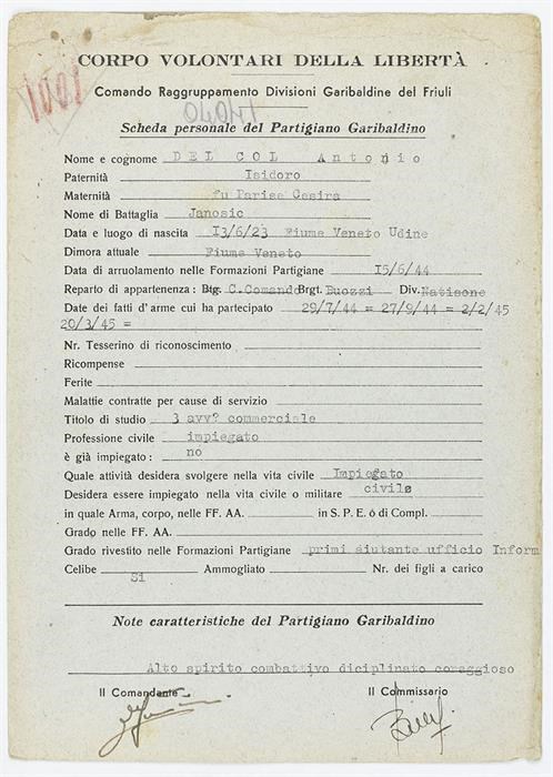 ANPI - Comitato provinciale di Udine - Fondo Schede Anagrafiche