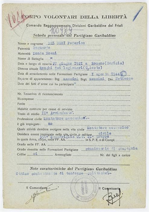 ANPI - Comitato provinciale di Udine - Fondo Schede Anagrafiche