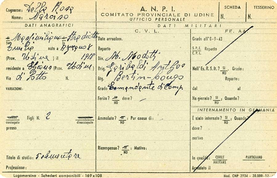 ANPI - Comitato provinciale di Pordenone - Archivio Storico ANPI - Comitato provinciale di Pordenone - Schede del partigianato