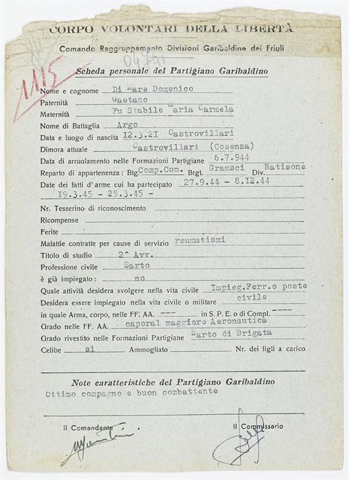ANPI - Comitato provinciale di Udine - Fondo Schede Anagrafiche