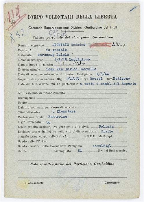 ANPI - Comitato provinciale di Udine - Fondo Schede Anagrafiche