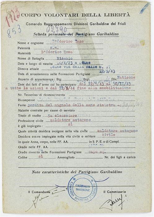 ANPI - Comitato provinciale di Udine - Fondo Schede Anagrafiche