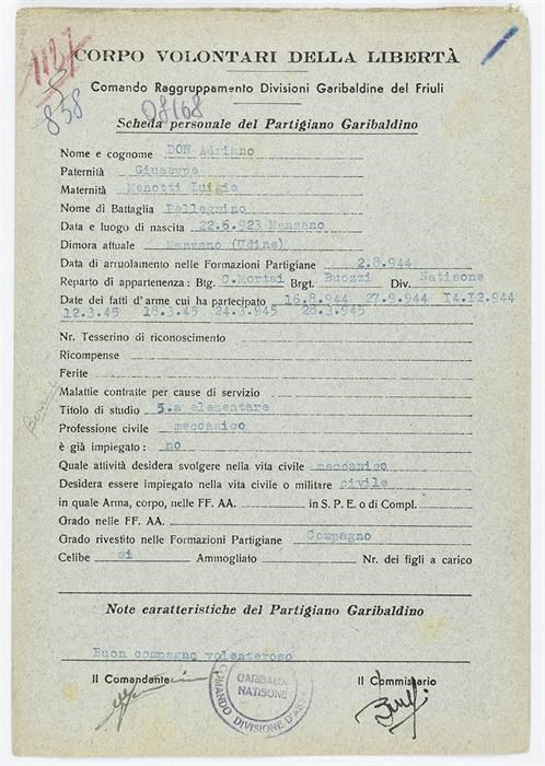 ANPI - Comitato provinciale di Udine - Fondo Schede Anagrafiche