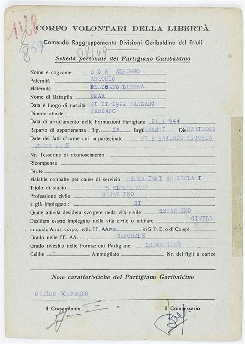 ANPI - Comitato provinciale di Udine - Fondo Schede Anagrafiche