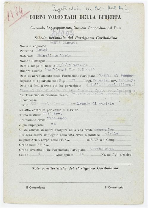 ANPI - Comitato provinciale di Udine - Fondo Schede Anagrafiche