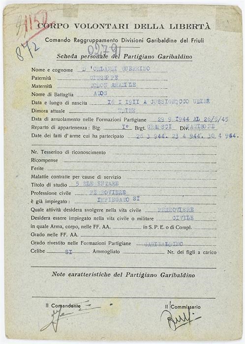 ANPI - Comitato provinciale di Udine - Fondo Schede Anagrafiche