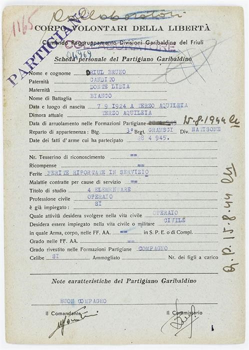 ANPI - Comitato provinciale di Udine - Fondo Schede Anagrafiche