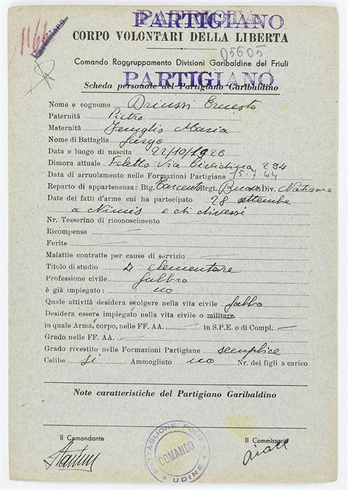 ANPI - Comitato provinciale di Udine - Fondo Schede Anagrafiche