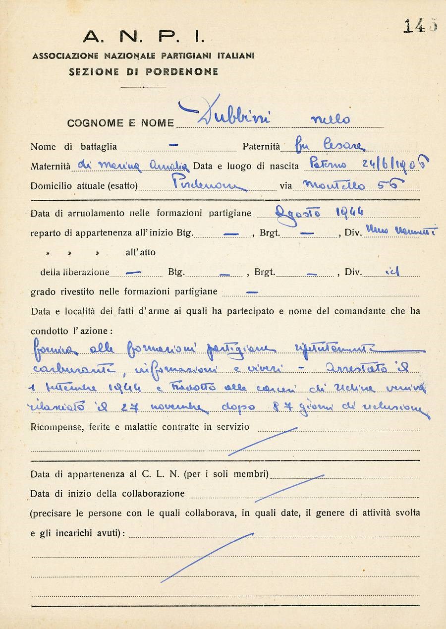 ANPI - Comitato provinciale di Pordenone - Archivio Storico ANPI - Comitato provinciale di Pordenone - Schede del partigianato