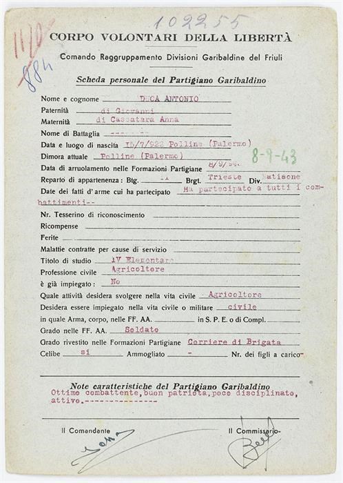 ANPI - Comitato provinciale di Udine - Fondo Schede Anagrafiche