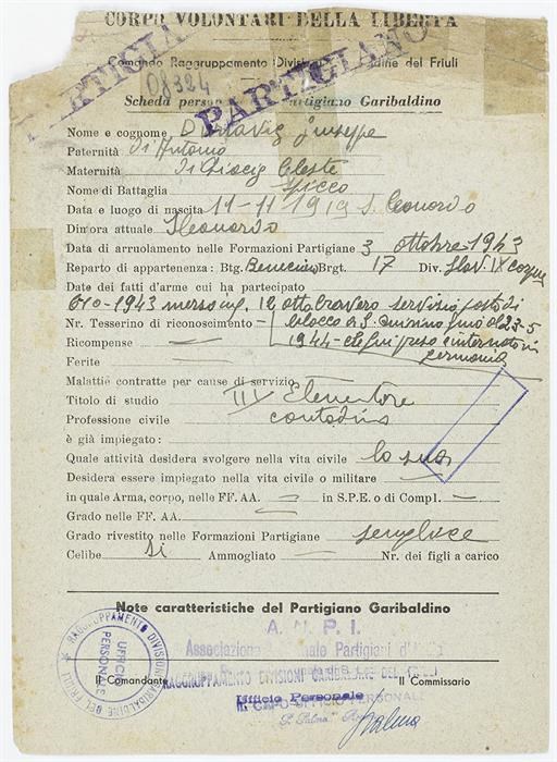 ANPI - Comitato provinciale di Udine - Fondo Schede Anagrafiche