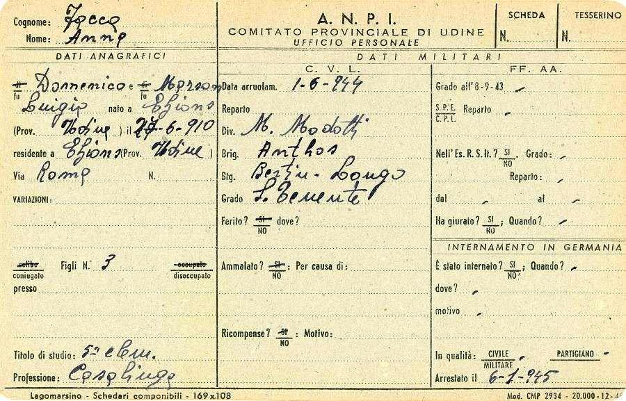 ANPI - Comitato provinciale di Pordenone - Archivio Storico ANPI - Comitato provinciale di Pordenone - Schede del partigianato