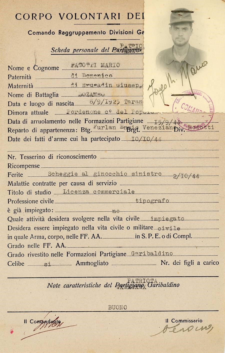 ANPI - Comitato provinciale di Pordenone - Archivio Storico ANPI - Comitato provinciale di Pordenone - Schede del partigianato