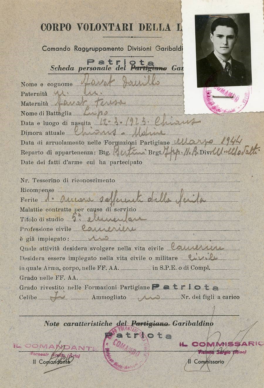 ANPI - Comitato provinciale di Pordenone - Archivio Storico ANPI - Comitato provinciale di Pordenone - Schede del partigianato