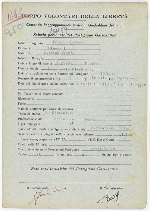 ANPI - Comitato provinciale di Udine - Fondo Schede Anagrafiche